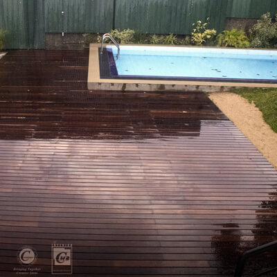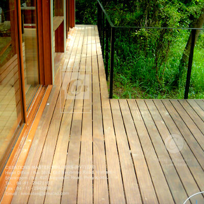 Creating a space with comfort with the touch of solid wood decking , window partitions and laminated wooden flooring.